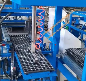 Seedling Tray Making Machine is the manufacturing machine for making seed tray. These are typically fully automatic and use a process called vacuum thermoforming.A plastic sheet (oPET, PVC, PS, PP,or HIPS) is heated until soft, and then a vacuum pulls the softened plastic over a mold to create the tray shape,Then punch the hole for nursery tray.